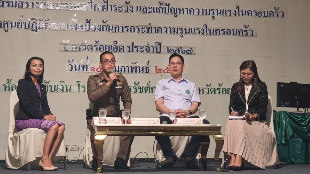 วันที่ 15 กพ.67 เวลา 10.00 น.นพ.ธงชัย เสรีรัตน์ รองผู้อำนวยการด้านการเงินการคลัง โรงพยาบาลร้อยเอ็ด เป็นวิทยากรบรรยายโครงการแก้ไขปัญหาความรุนแรงในครอบครัวและร่วมเสวนาปัญหาความรุนแรงฯ โดยเป็นตัวแทนของสาธารณสุข ณ รร.เพชรรัชต์กาเด้น จังหวัดร้อยเอ็ด